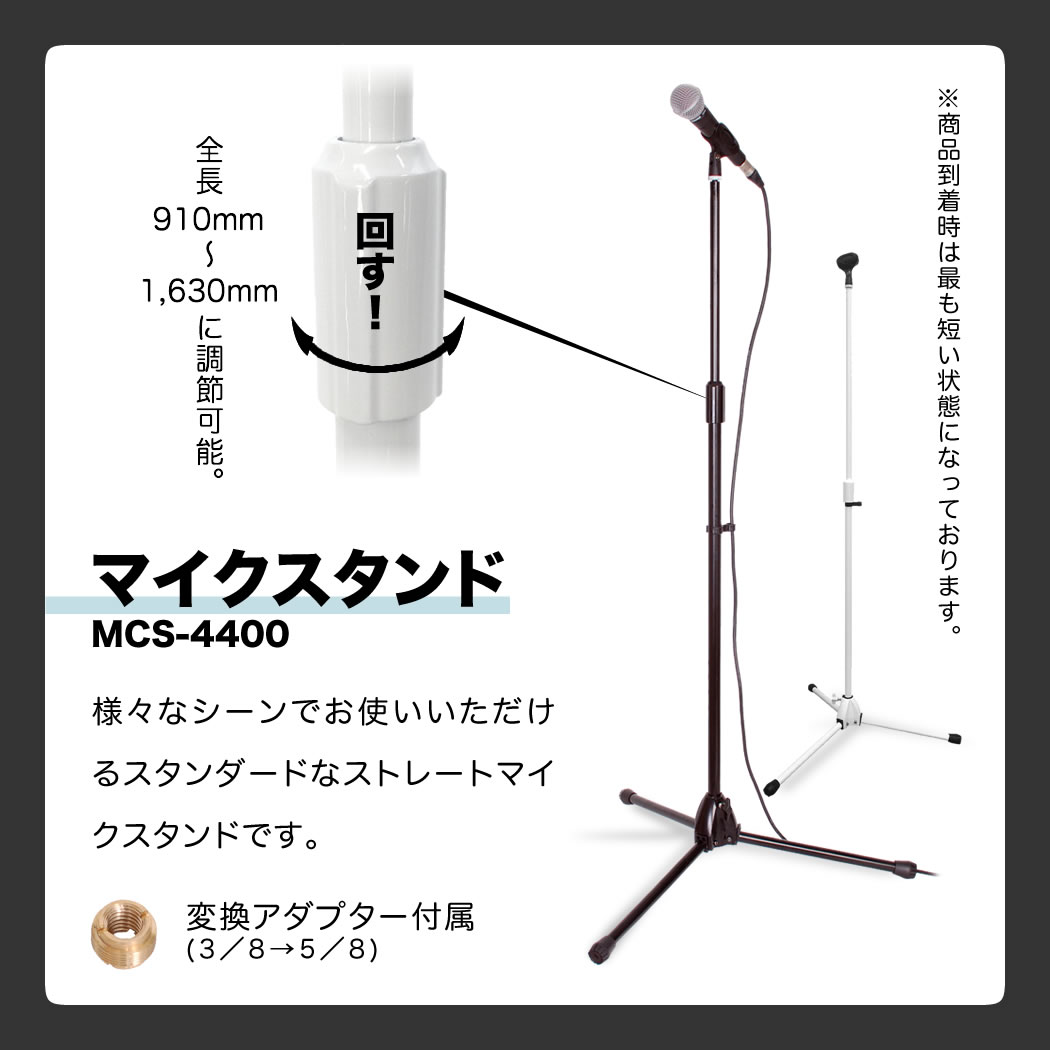 マイク+ストレートマイクスタンドセット【ダイナミックマイク ストレートマイクスタンド マイクホルダー付属 ボーカルマイク MCS4400 CM2000 MH50】