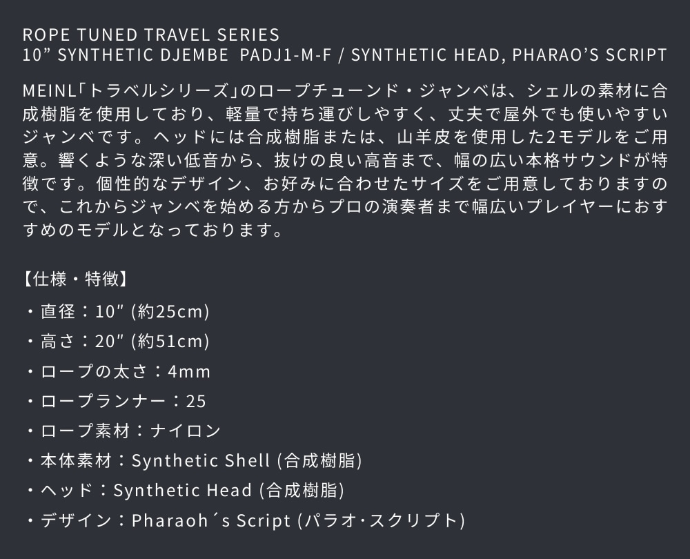 |MEINL Percussion ジャンベ Travel Series 10" Synthetic Djembe PADJ1-M-F【マイネル パーカッション 打楽器 合成樹脂製ヘッド・シェル】