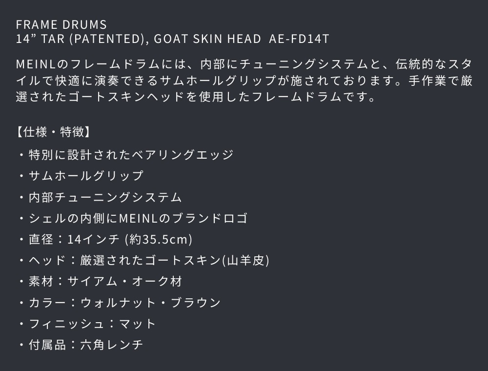 MEINL Percussion フレームドラム 14" Tar AE-FD14T【マイネル パーカッション Frame Drums ハンドドラム Hand Drum】