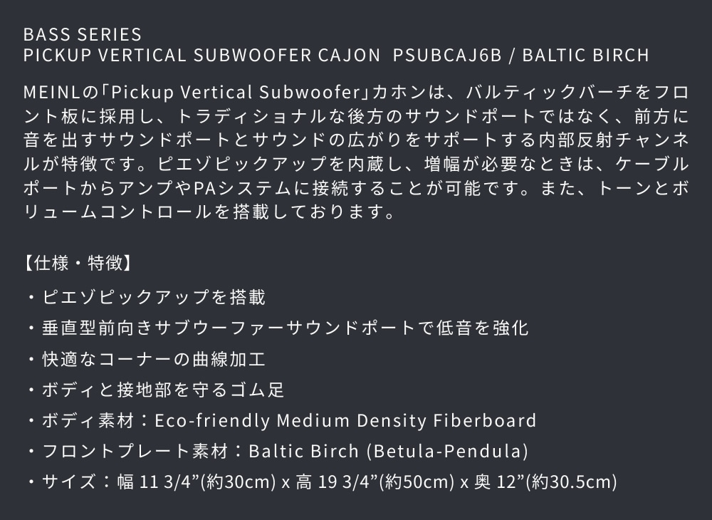 MEINL Percussion カホン ピエゾピックアップ搭載 Pickup Vertical Subwoofer Cajon PSUBCAJ6B【マイネル パーカッション サブウーファー】