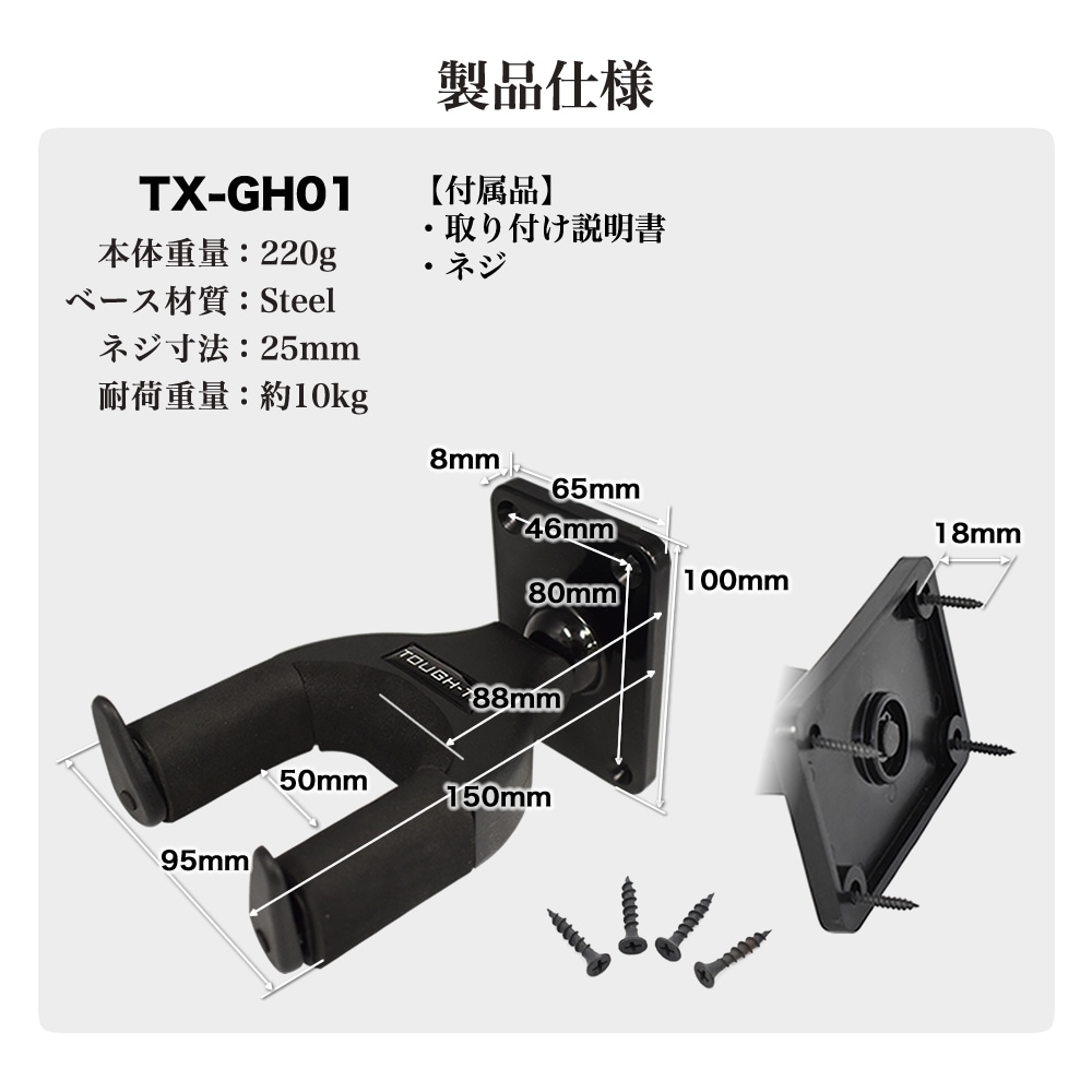 TOUGH-TX ロック式ギターハンガー TX-GH01 【アコースティックギター/エレキギター/ベース対応 タフティクス オートマチック・ゲート・ロック・システム ギターハンガー】