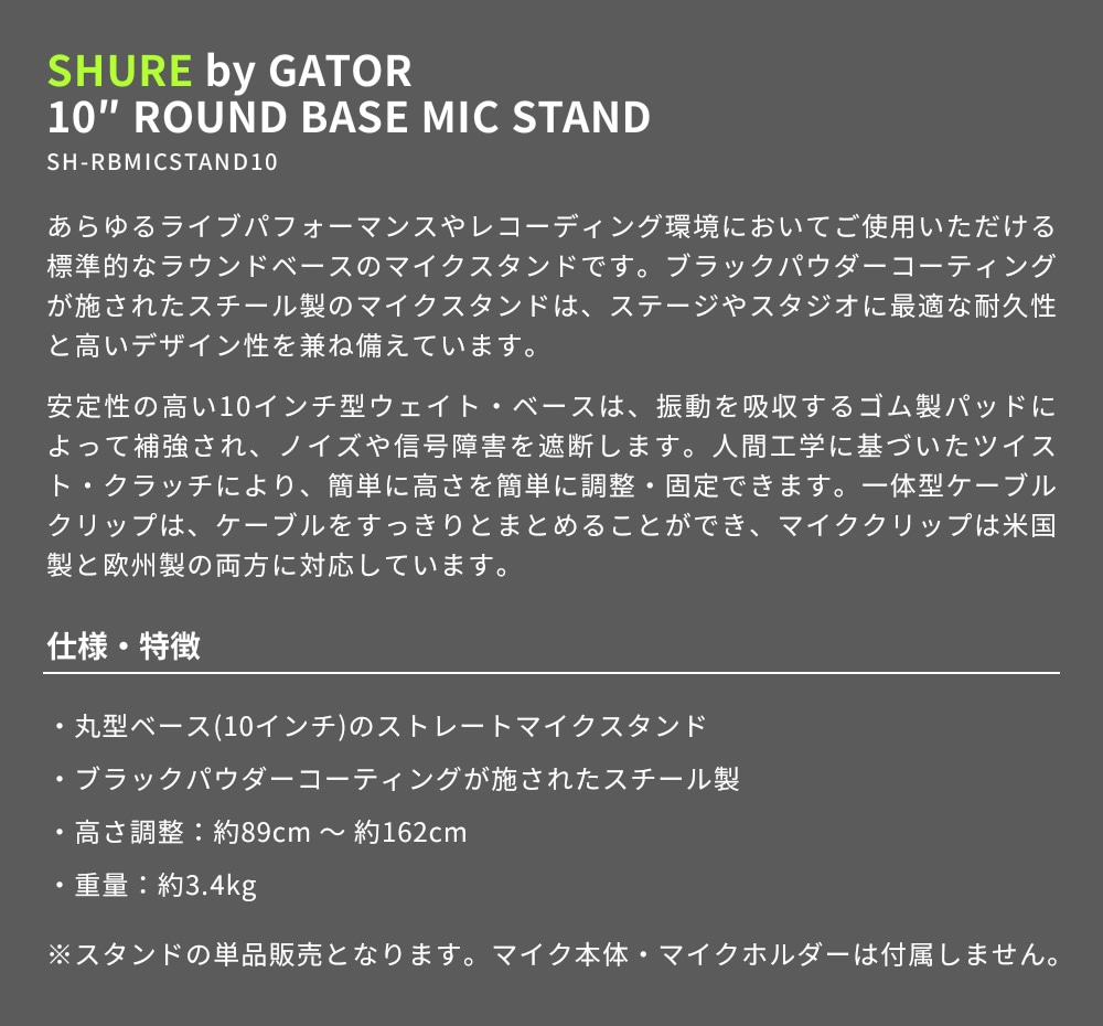 |Shure by Gator マイクスタンド ストレートタイプ 10" 丸型ベース SH-RBMICSTAND10 【 シュア ゲーター ダイナミックマイク コンデンサーマイク 】
